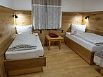 Hinweis: Das Schlafzimmer mit den Einzelbetten liegt außerhalb des Wohn- und Essbereichs und ist nur über den Gemeinschaftsflur zugänglich. Alternativ gibt es eine Verbindungstüre zwischen den beiden Schlafzimmern. Alle Zimmer sind abschließbar.