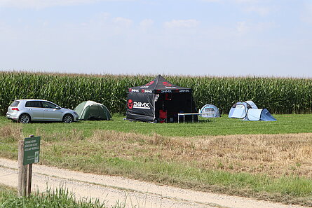 Auf unserem Hof heißen wir euch auch mit Wohnwagen, Wohnmobil oder einem Zelt herzlich Willkommen!