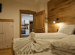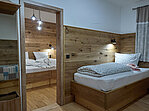 Hinweis: Das Schlafzimmer mit den Einzelbetten liegt außerhalb des Wohn- und Essbereichs und ist nur über den Gemeinschaftsflur zugänglich. Alternativ gibt es eine Verbindungstüre zwischen den beiden Schlafzimmern. Alle Zimmer sind abschließbar.