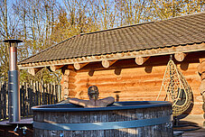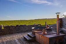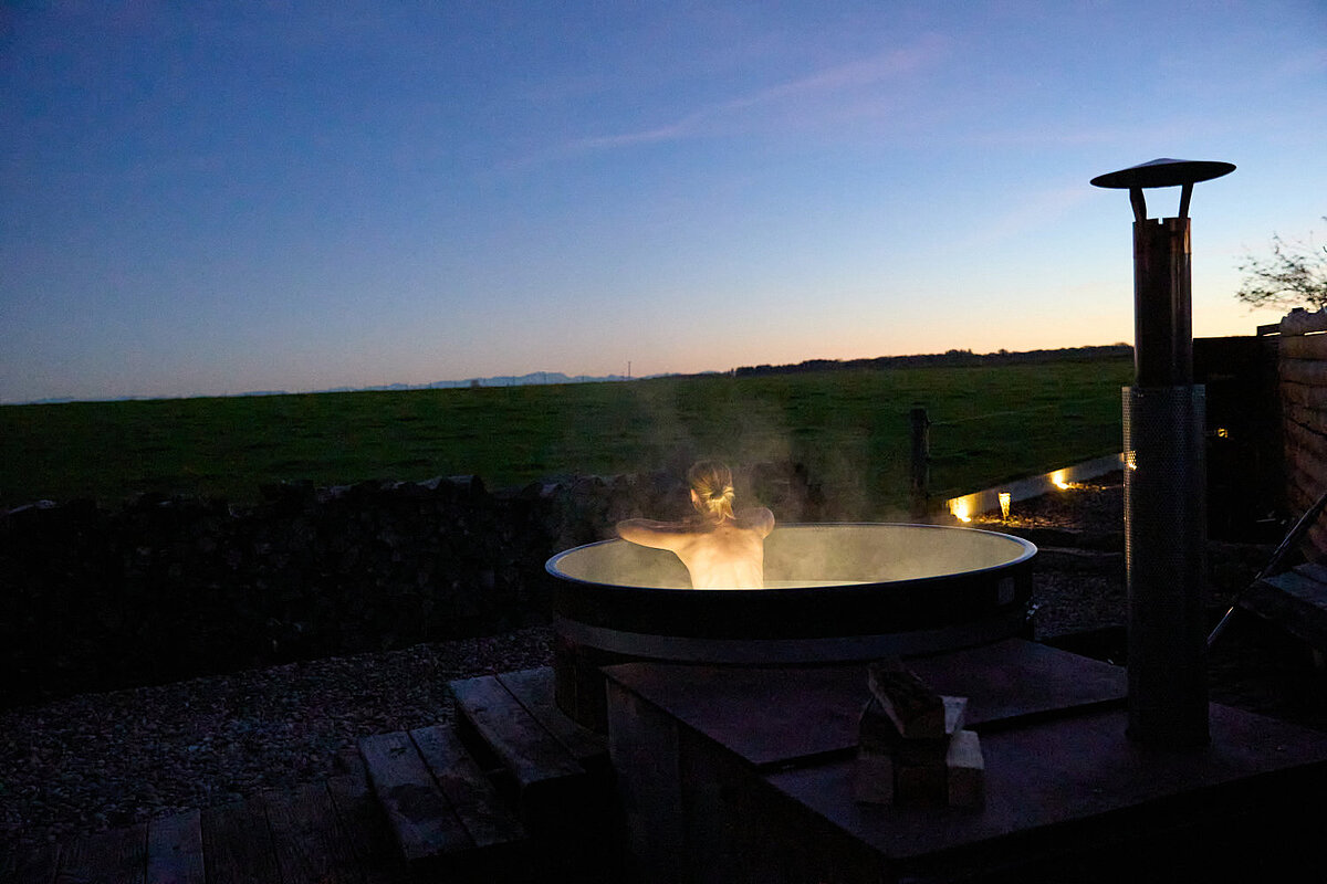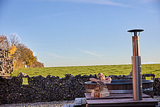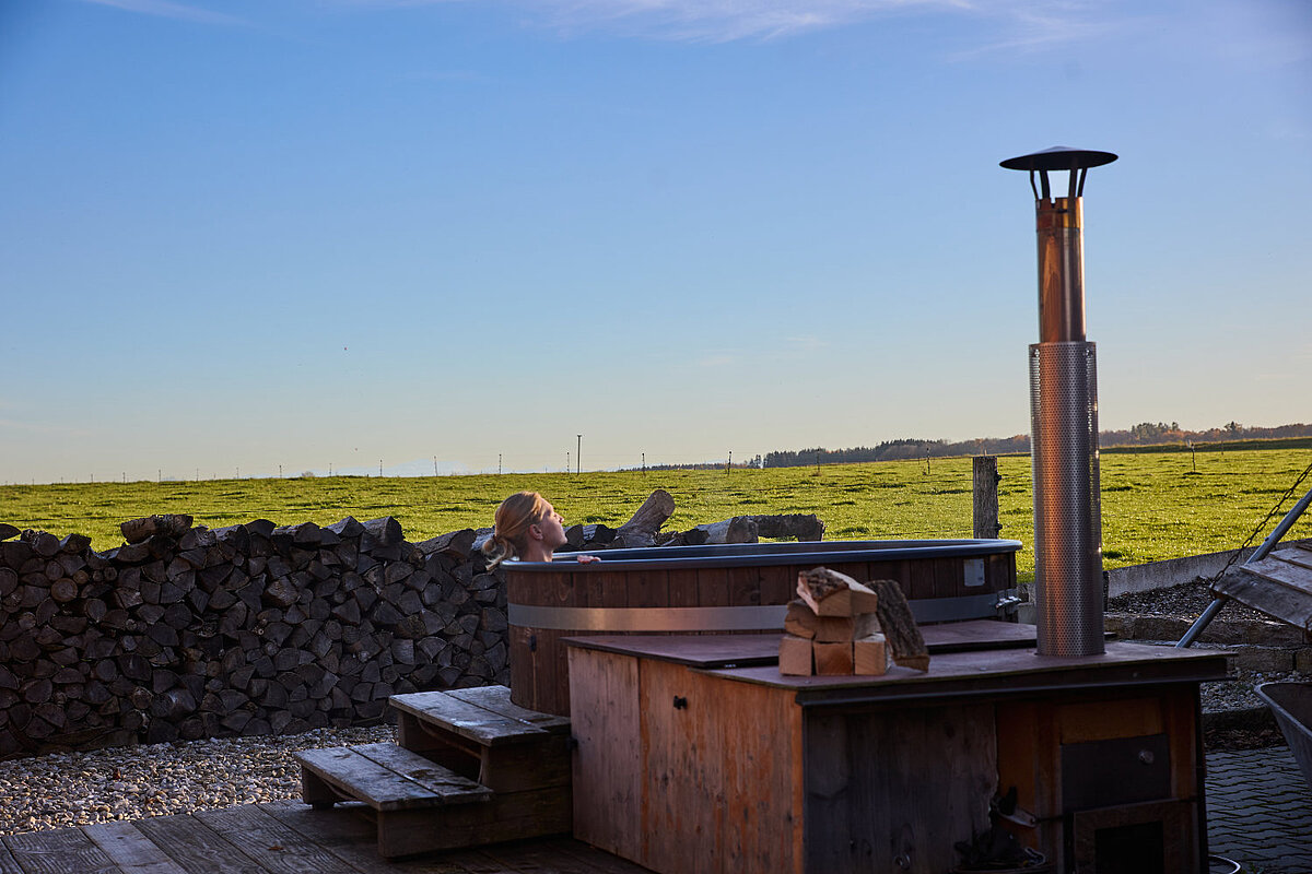 Tauche ein in 38° bis 42° C warmes Wasser und spüre, wie die Wärme durch deinen Körper fließt und deine Seele streichelt. Da unser Badefass mit Holz angeschürt wird, kann die Temperatur leicht schwanken. Was dir neben einem immens gesteigerten Wohlbefinden noch passieren kann: ein Besuch von zufriedenen Kühen, die einfach mal nachschauen wollen, wer da in der XXL-Badewanne neben ihrer Weide liegt oder ein eindrucksvoller Sternenhimmel ohne Lichtverschmutzung. Und das rund ums Jahr, Sommer wie Winter.